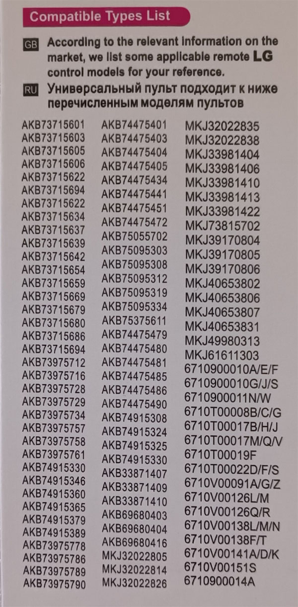 Λίστα Συμβατών τηλεχειριστηρίων LG: