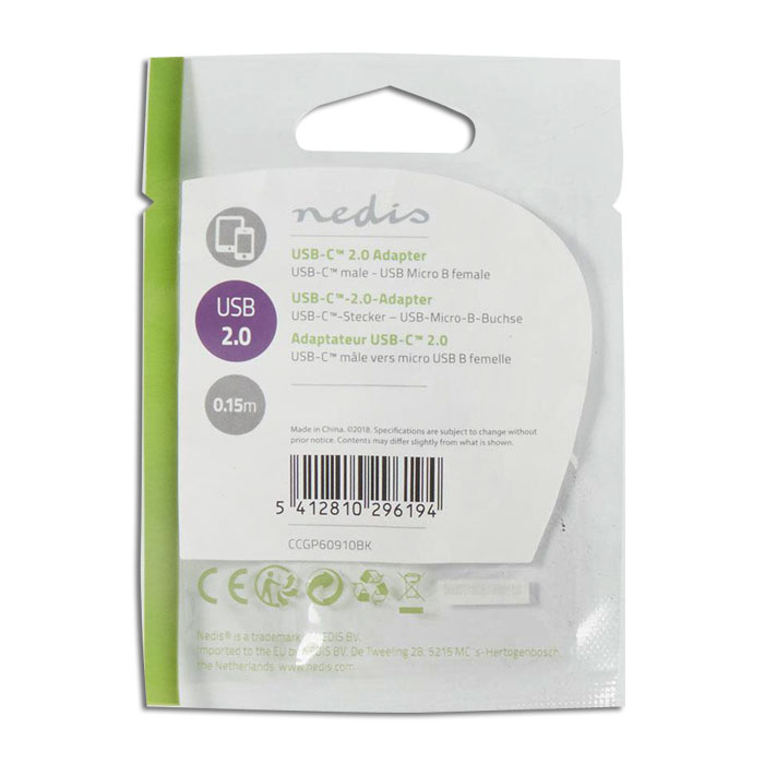 NEDIS CCGP60910BK Αντάπτορας USB 2.0 type-C αρσ. σε micro USB B θηλ.
