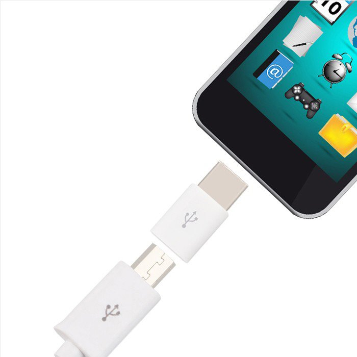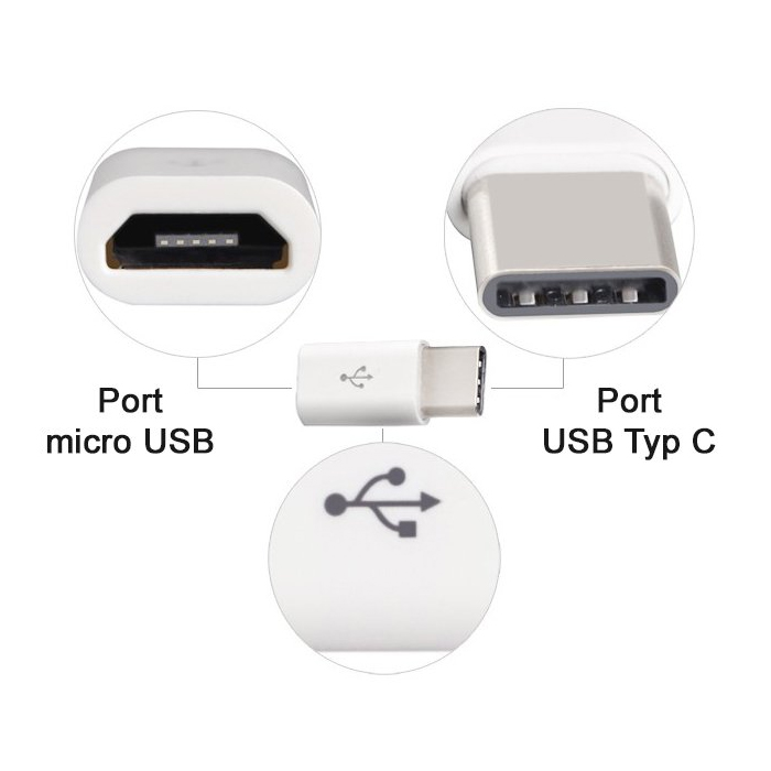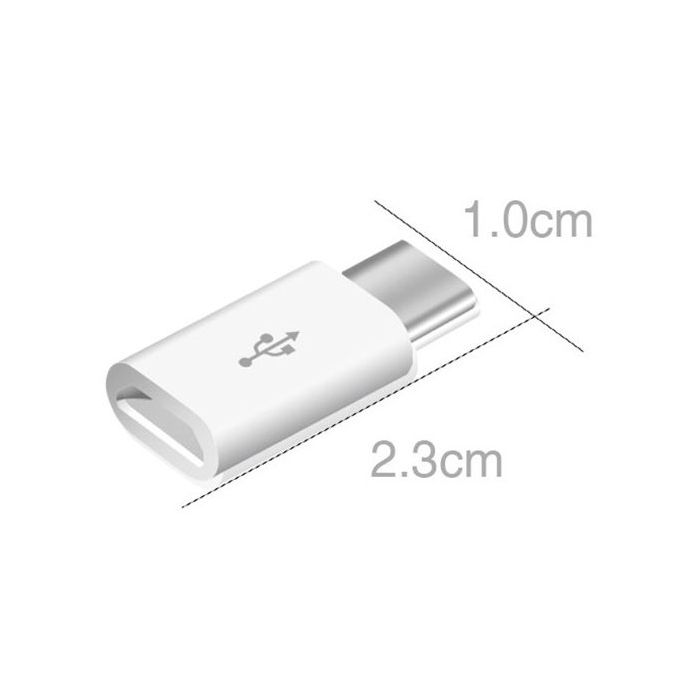 Micro USB to USB Type C Adapter Data Sync Charge white
