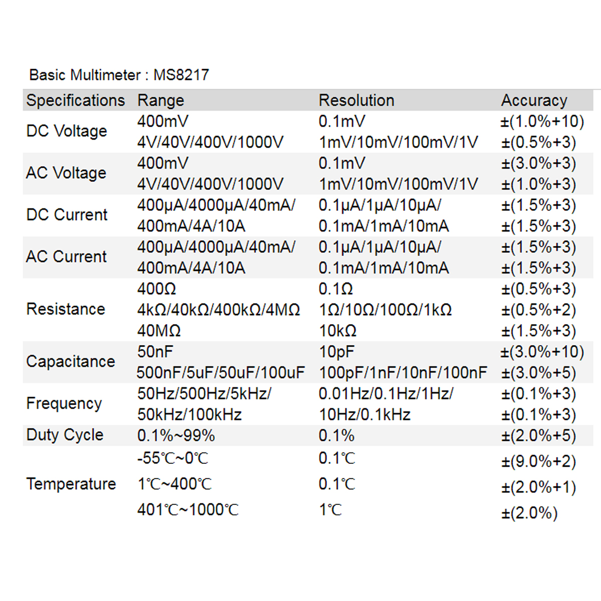 Ψηφιακό Πολύμετρο με Αυτόματες Κλίμακες της MASTECH, MS8217. Μέτρηση τάσης, έντασης, αντίστασης, χωρητικότητας, συχνότητας, θερμοκρασίας. Απλά επιλέξτε τη μέτρηση που θέλετε να κάνετε και η κλίμακα προσαρμόζεται αυτόματα από το πολύμετρο.