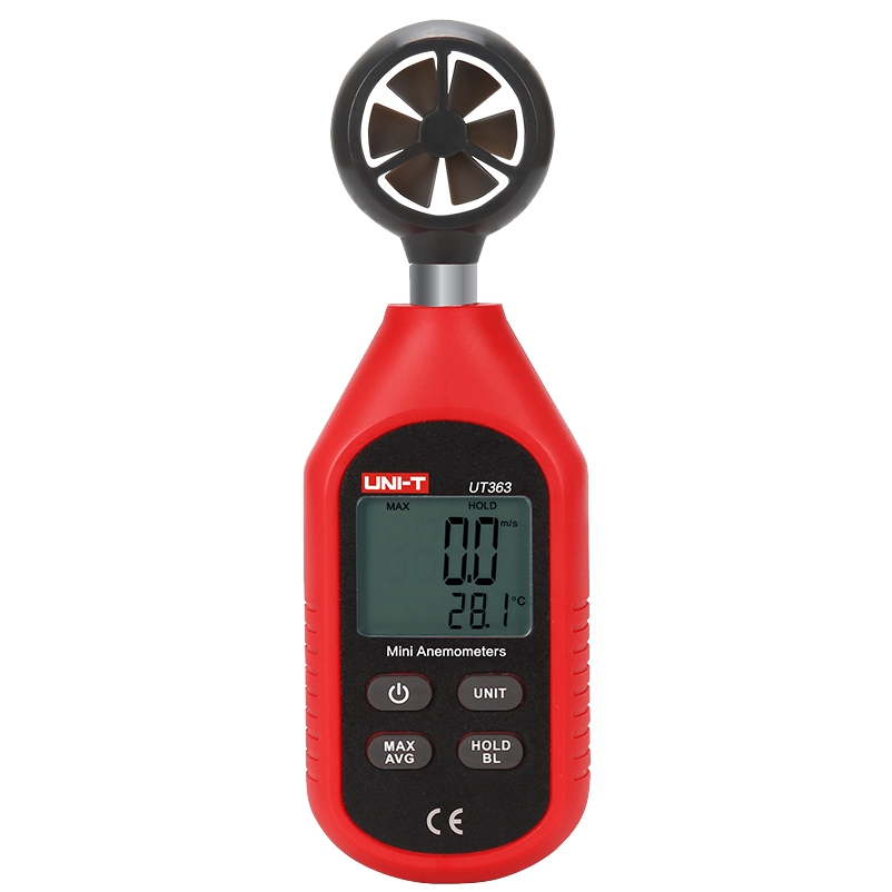 Μίνι ψηφιακό Ανεμόμετρο της UNI-TREND, UT-363. Ενσωματώνει τεχνολογία μέτρησης υψηλής ακρίβειας με μέτρηση ταχύτητας ανέμου 0~30m/s και μέτρηση θερμοκρασίας -10°C έως 50°C. Κλίμακα ταχύτητας ανέμου 0.1m/s και μέτρησης θερμοκρασίας 0.1°C, αντίστοιχα ακρίβεια ±5%rdg+0.5 και ±2%.