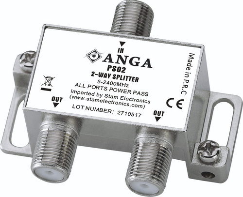 ANGA PS02 Διακλαδωτής TV-SAT 2 εξόδων (5 - 2400 MHz) με φις F και dc pass