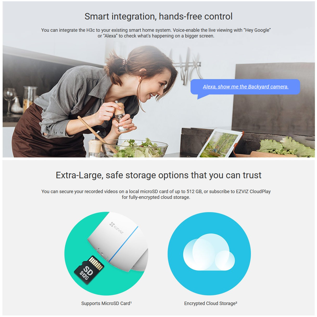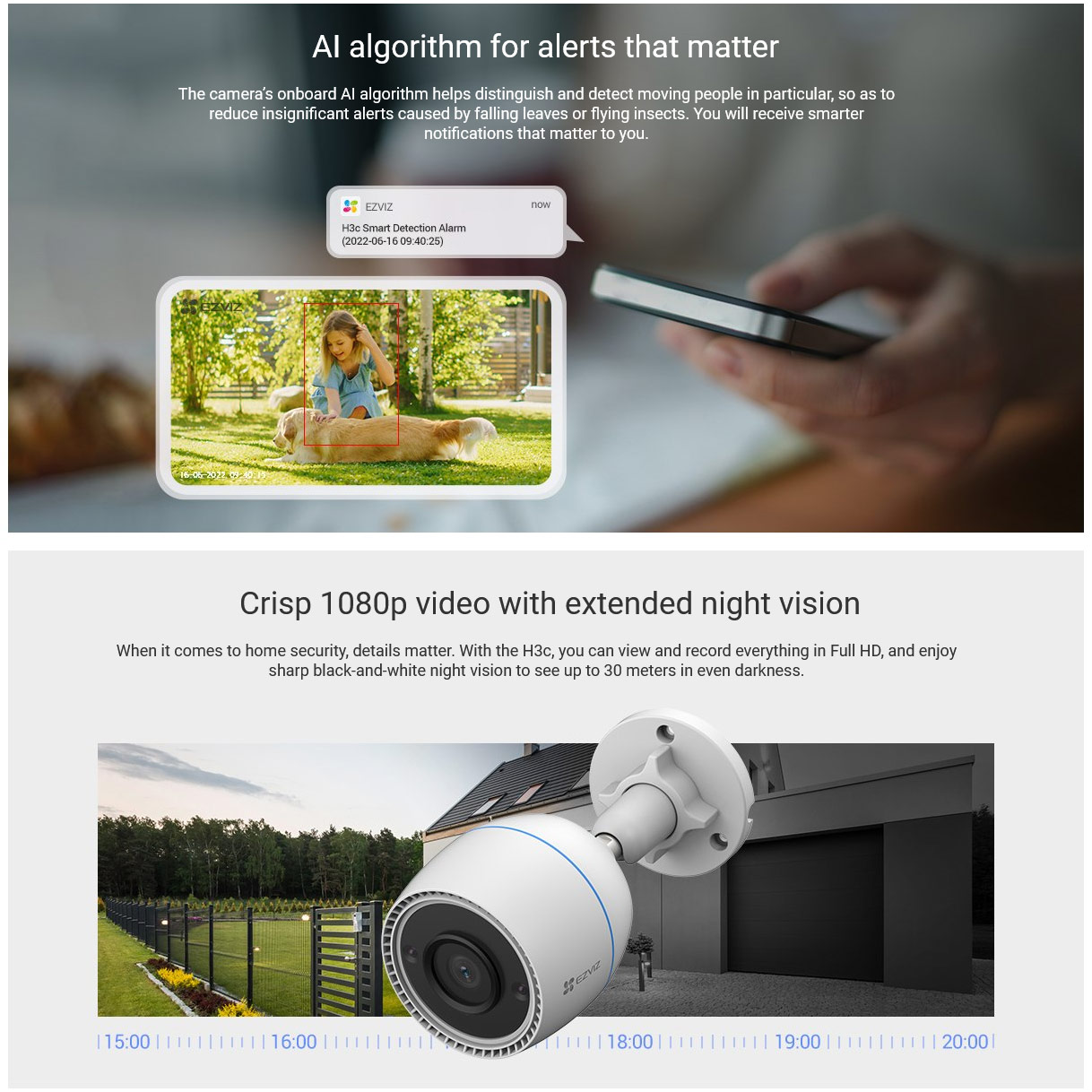 EZVIZ H3C (CS-H3C-R100-1K2WF) Ασύρματη - Ενσύρματη Αδιάβροχη IP Κάμερα 2Mpixels, WiFi, Mic/Speaker, microSD, H.265