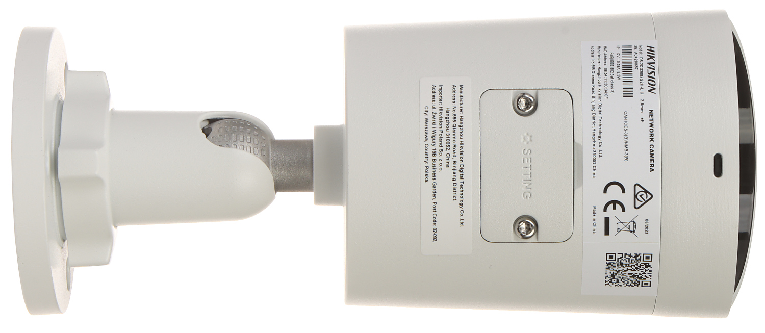 Διαθέτει υποδοχή για κάρτα μνήμη MicroSD ως 512GB για τοπική καταγραφή των Videos, η οποία βρίσκεται σε ειδική θέση στην κάτω πλευρά του σώματος της κάμερας, για εύκολη πρόσβαση κατά την τοποθέτηση της κάρτας μνήμης. Το κέλυφος της κάμερας είναι αδιάβροχο, με βαθμό στεγανότητας IP67 για χρήση σε εσωτερικούς και εξωτερικούς χώρους. Επιπλέον, σας παρέχει δυνατότητα τροφοδοσίας και με 12VDC στο Jack τροφοδοσίας της κάμερας, αλλά υποστηρίζει και τροφοδοσία Power Over Ethernet (PoE 802.3af) για απευθείας τροφοδοσία μέσα από το καλώδιο Ethernet, από συμβατές συσκευές (PoE NVR, PoE Switches ή PoE Injectors) που πληρούν το πρότυπο 802.3af. Διαστάσεις: Ø74.4 mm × 179.2 mm