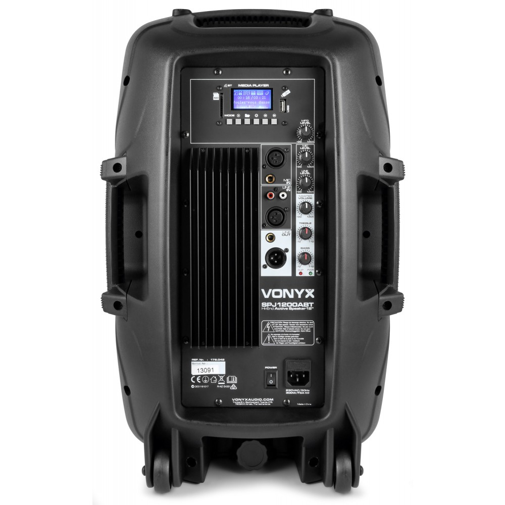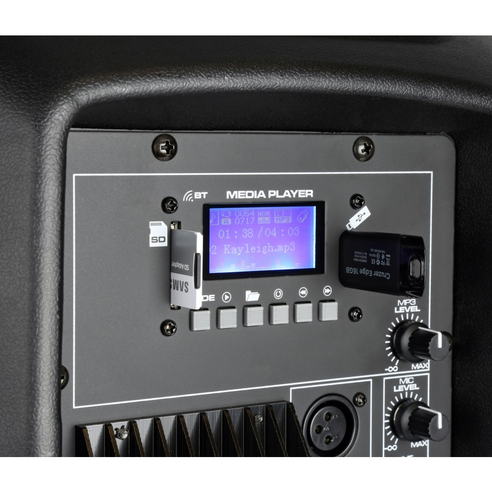 Επαγγελματικό αυτοενισχυόμενο ηχείο ισχύος 600 Watt Max / 300 Watt με πλαστική καμπίνα ABS και woofer 12" και ενσωματωμένο MP3 Player μέσω USB και κάρτας SD. Διαθέτει όμορφο - ευανάγνωστο LCD Display με Blue Back light φωτισμό και απεικόνιση πληροφοριών των MP3 τραγουδιών. Επίσης θα βρείτε 6 πλήκτρα με τα οποία μπορείτε να διαχειριστείτε πλήρως τα MP3 τραγούδια.