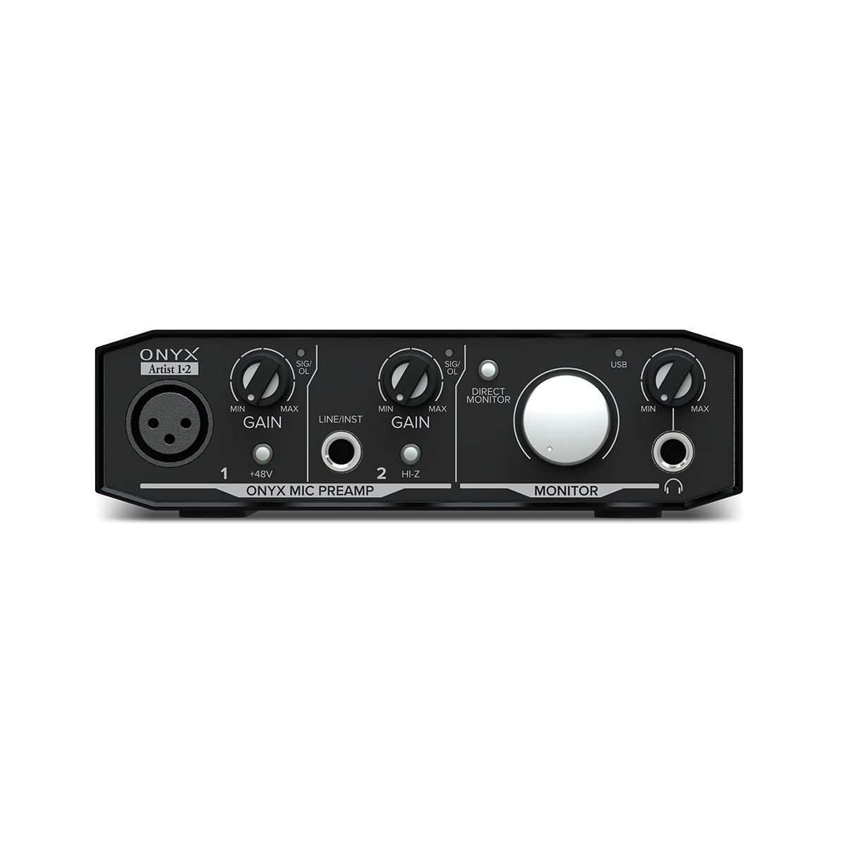 Η κάρτα ήχου Artist 1•2 έχει προενισχυτές Onyx™ με υψηλή πιστότητα και εύρεια δυναμική περιοχή, με XLR είσοδο και 48V Phantom Power για χρήση με πυκνωτικά μίκρόφωνα, είσοδο 1/4 TRS με Hi-Z για σύνδεση κιθάρας, μπάσσου κ.α.