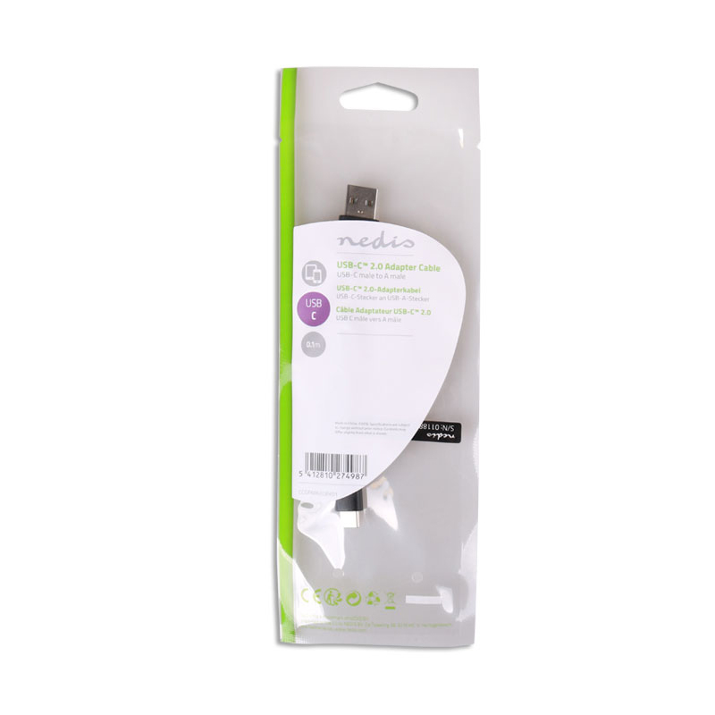 Καλώδιo δεδομένων και Φόρτισης και USB 2.0 type-C αρσ. - USB A αρσ. 0.10m της NEDIS, CCGP60600BK01.