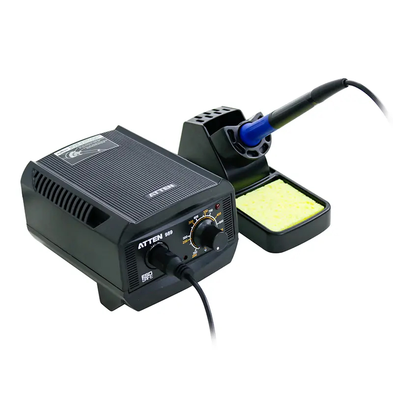 Κεραμικός σταθμός κόλλησης με ρυθμιζόμενη θερμοκρασία της ATTEN AT-989. Ισχύς σταθμού 65Watt. Εύρος λειτουργίας θερμοκρασίας: +200°C ~ +480°C. Κατασκευασμένος από αγώγιμα υλικά. ESD safe, προστασία από εκκενώσεις ηλεκτροστατικού ηλεκτρισμού. Εύκολος στη χρήση & στην ρύθμιση θερμοκρασίας.