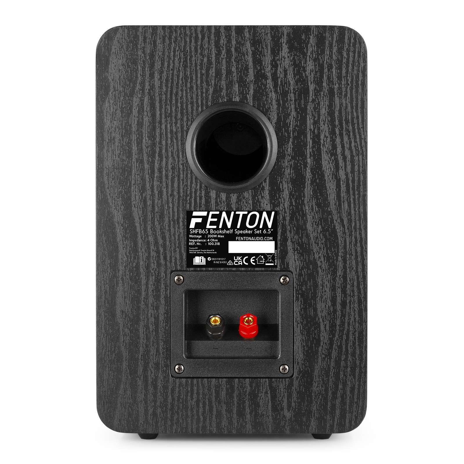 Ζεύγος 6.5" ηχείων βιβλιοθήκης 2 δρόμων 200 Watt 100.318 σχεδίασης 2 δρόμων με bass reflex στο πίσω μέρος τους.
