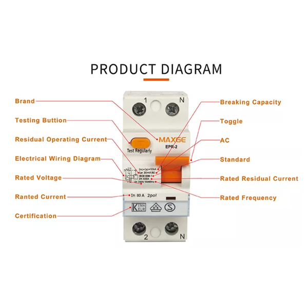 Relay Διαφυγής 4P 63A 30mA TYPE A της MAXGE, EPR-4 A 63A. Ρελέ διαφυγής ράγας, τετραπολικό (4P) Tύπου Α.