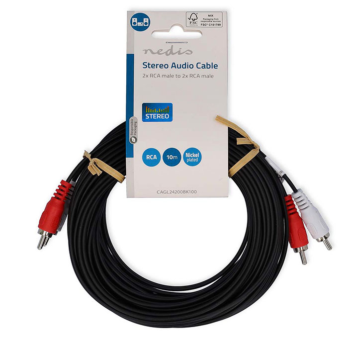 Καλώδιο 2 x RCA αρσ. σε 2 x RCA αρσ. 10m της NEDIS, CAGL24200BK100.